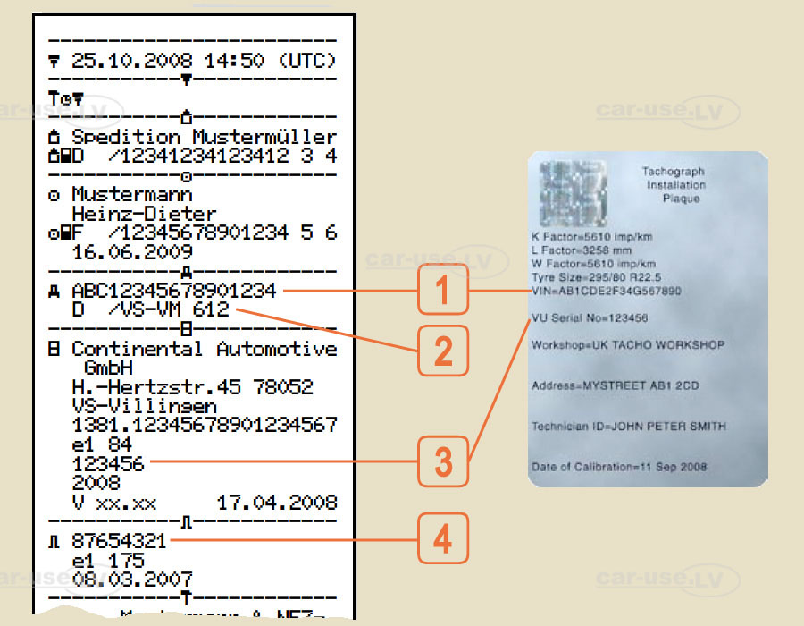 3. Tahogrāfa sērijas numuram, uz tahogrāfa instalācijas tabulas,
