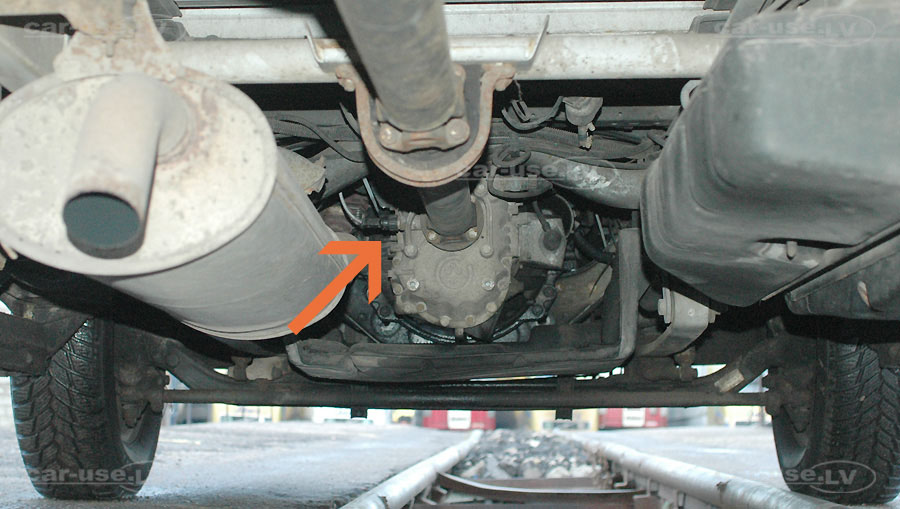 Ar bultiņu ir parādīts impulsais devējs, kurš ir uzstādīts uz automobiļa.